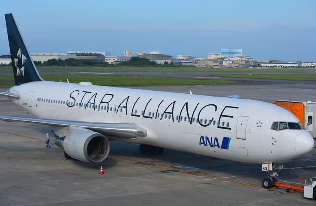 スターアライアンス塗装だ。これ松山で撮りたかったんだよなー。