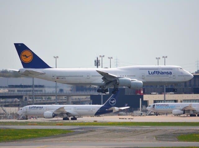こんなに旅客型ジャンボが飛んでいるのも、フランクフルトだけだろう。
