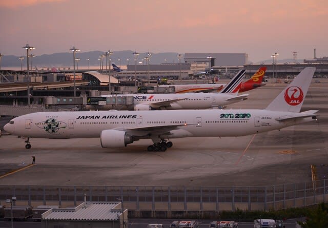 2020-09-20 今日の関空(JAL B777-300ER) 関西国際空港(KIX)/RJBB フライトレーダーを見ていると、 いつも定期便で入らない機体がいたので一瞬撮りに行ってきた。 Japan Airlines B777-300ER/JA734J ロスから飛んできた。 普段はB787-9。でも今年度申し訳程度に飛んでいるものはB787-8。 急に来たB777-300ER。 でも、窓を見ると結構シェードが降りてたから、 思った以上に旅客乗ってたのかもしれないね。 JALのトリプルは引退が進んでいく模様。 関空でまた300ERが見られるかどうか。 見られたらいいなぁ。